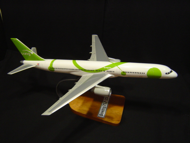 1/100 B757-200 ソング航空 (ボーイング)ソリッドモデル 木製航空機模型